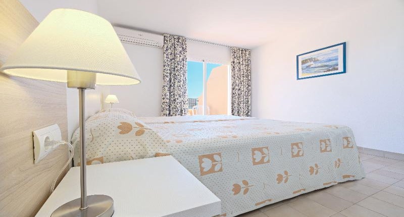 The Azuline Sunshine Apartments feature studio and one bedroom apartments set over three floors, each for up to 3 persons and fully equipped with complete bathroom, WiFi (local charge), kitchenette with fridge, and a balcony with sea or pool view. Safety-deposit boxes and fans are optional. All studios and apartments are air conditioned.